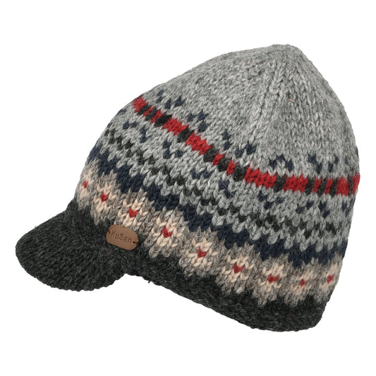 Kusan Brooklyn Beanie Mütze mit Visier Fair Isle - Grau-Anthrazit