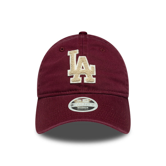 New Era Damen 9TWENTY L.A. Dodgers Baseball Cap - MLB Boucle - Burgunderrot-Cremefarben