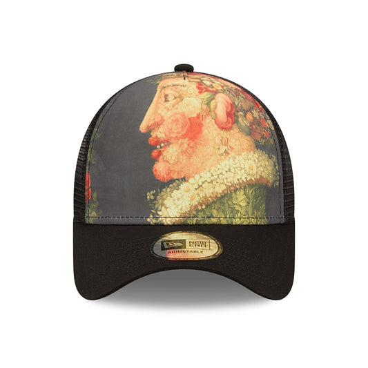 New Era 9FORTY A-Frame 4 Seasons Trucker Cap - Le Louvre AOP - Schwarz