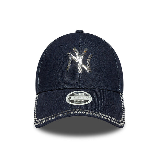 New Era Damen 9FORTY New York Yankees Baseball Cap - MLB Sequin Denim - Dunkelblau