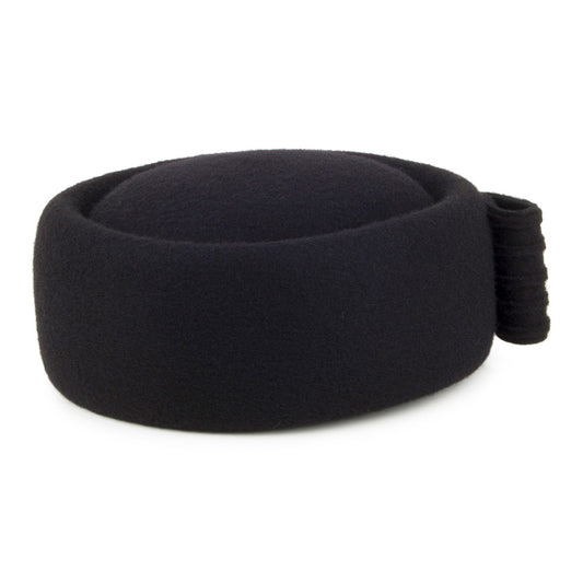 Whiteley Caroline Pillbox Hut aus Wolle mit Samt Schleife - Schwarz