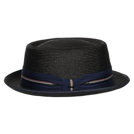 Jaxon & James geflochtener Pork Pie Hut aus Toyo Stroh - Schwarz