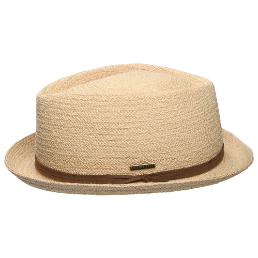 Stetson Diamond Crown Pork Pie Hut aus Raffia-Stroh - Natur