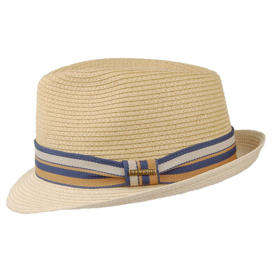 Stetson Trilby Hut aus Raffia-Stroh mit gestreiftem Band - Natur