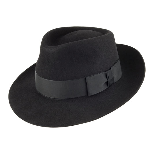 Christys Unisex Gangster Fedora Hut aus Haarfilz - Schwarz