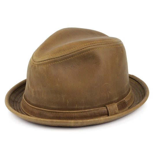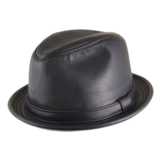 New York Hat Co. Trilby Hut aus Leder - Schwarz