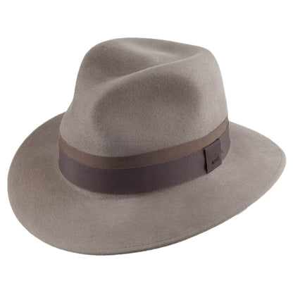 Dies ist der Bailey Barkley Fedora in Taupe. Dieser klassisch geformte Fedora ist aus LiteFelt (Wollfilz), welches wasserfest ist und seine Passform behält. Dieser Hut verfügt über eine Medium große Schnappkrempe und ein zweifarbiges Hutband aus Ripsband mit einer Bailey Anstecknadel an der Schleife. Eine elegante Ergänzung zu jedem Hutständer.Hut-Details: