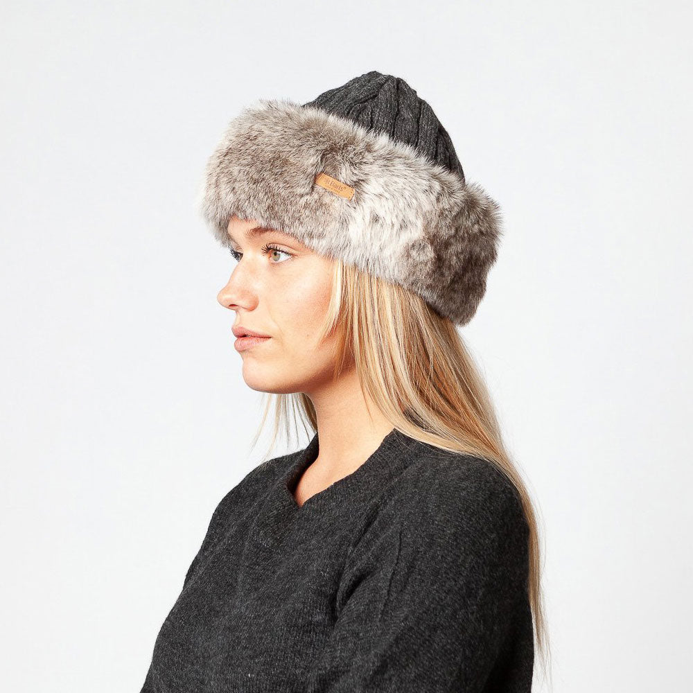 Barts Beanie Mütze Cable aus Kunstfell - Anthrazit-Hellbraun