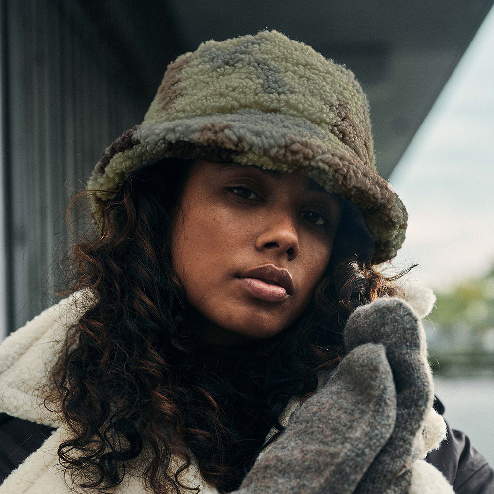 Barts Teddybuck Kunstfell Fischerhut in Tarnmuster - Grün