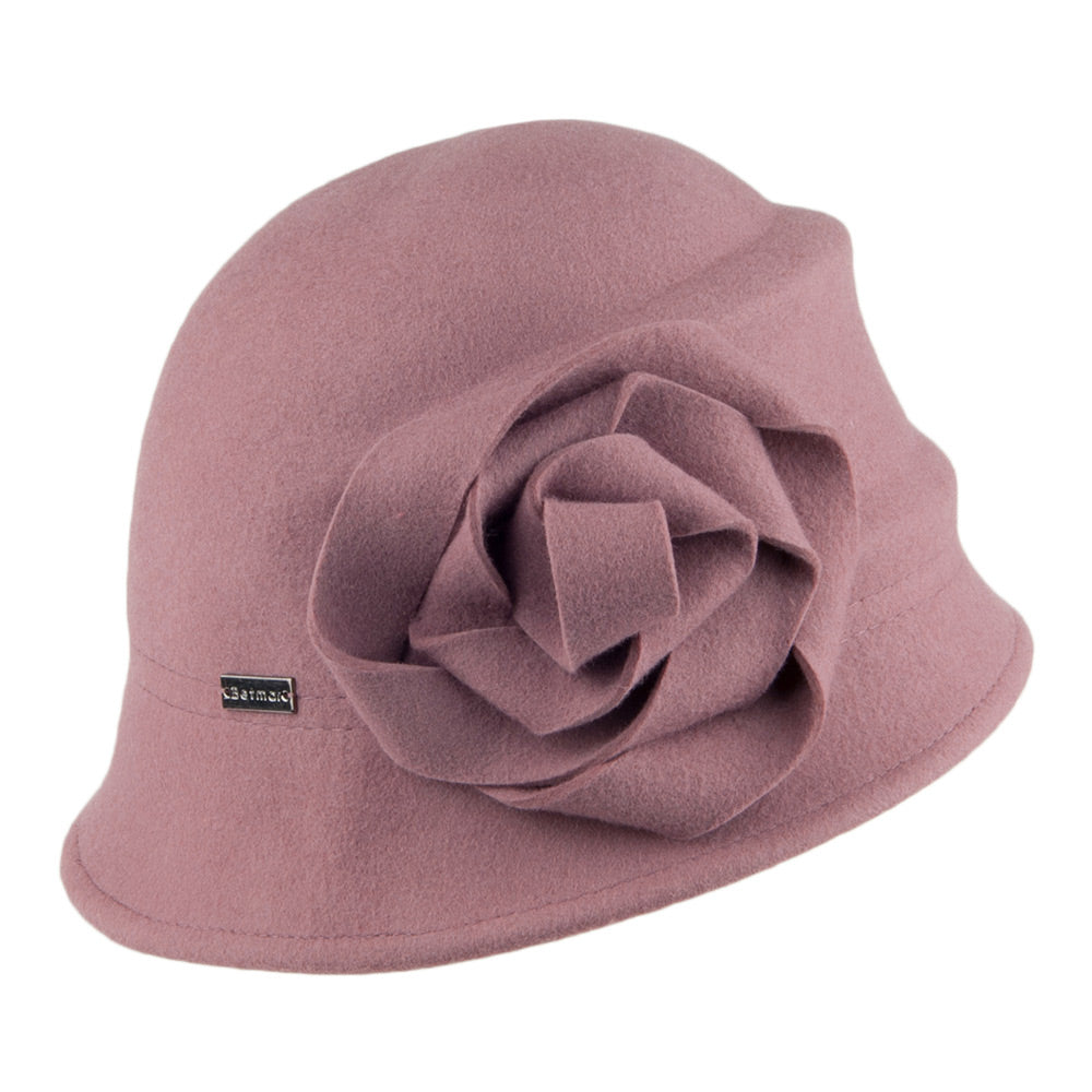 Dies ist der Alexandrite Glockenhut von Betmar in rosé. Hergestellt ist dieser fantastische Hut aus 100% Wolle und an der Seite ist eine dekorative Wollblume befestigt. Dieser Glockenhut ist vollständig mit Satin gefüttert und hat ein Schweißband aus Ripsband für den perfekten Tragekomfort.