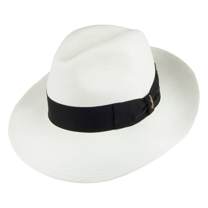 Borsalino Fine Panama Fedora Hut mit schwarzem Hutband - Perlweiß
