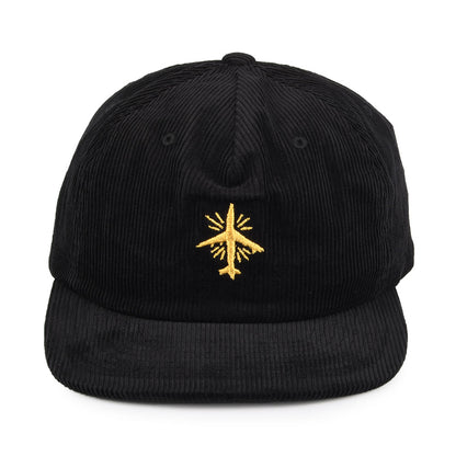 Hier ist die Brixton Kord BB Mode MP Snapback Cap in schwarz. Hergestellt aus 100% Baumwolle, hat diese Kord Snapback Cap ein Flugzeug Kunstwerk von BB Bastidas auf der Vorderseite seiner unstrukturierten Krone bestickt. Das BB Bastidas-Logo ist auf der Rückseite der Cap neben dem verstellbaren Riemen gestickt. Wie die meisten Snapbacks verfügt diese Cap über ein flaches Visier.