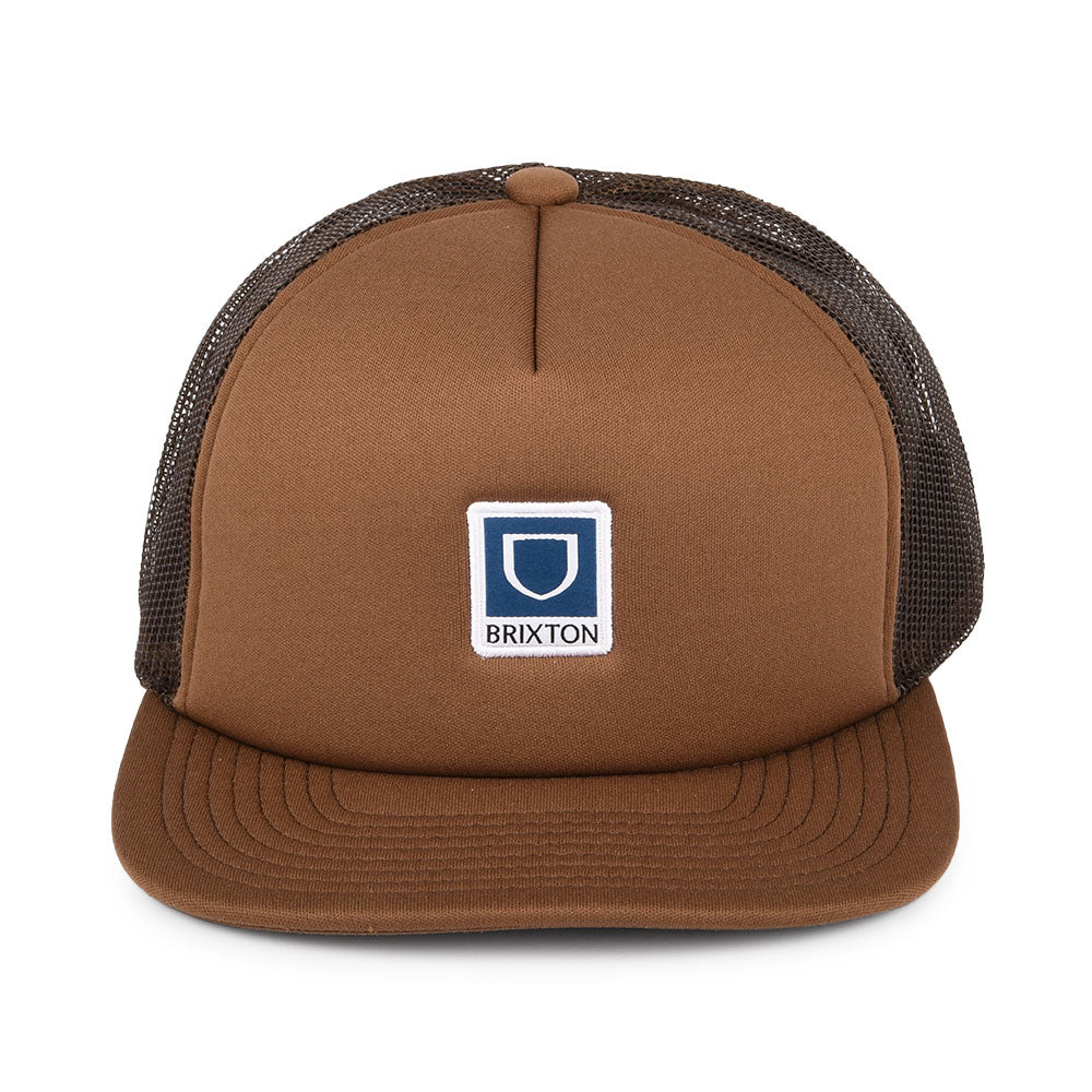 Hier ist die Brixton Hats Beta MP Trucker Cap in braun. Auf der gepolsterten Vorderseite ist ein Brixton Logo gestickt. Die Netzrückseite sorgt für Belüftung an heißen Sommertagen und ein verstellbarer Riemen sorgt für eine bequeme Passform.