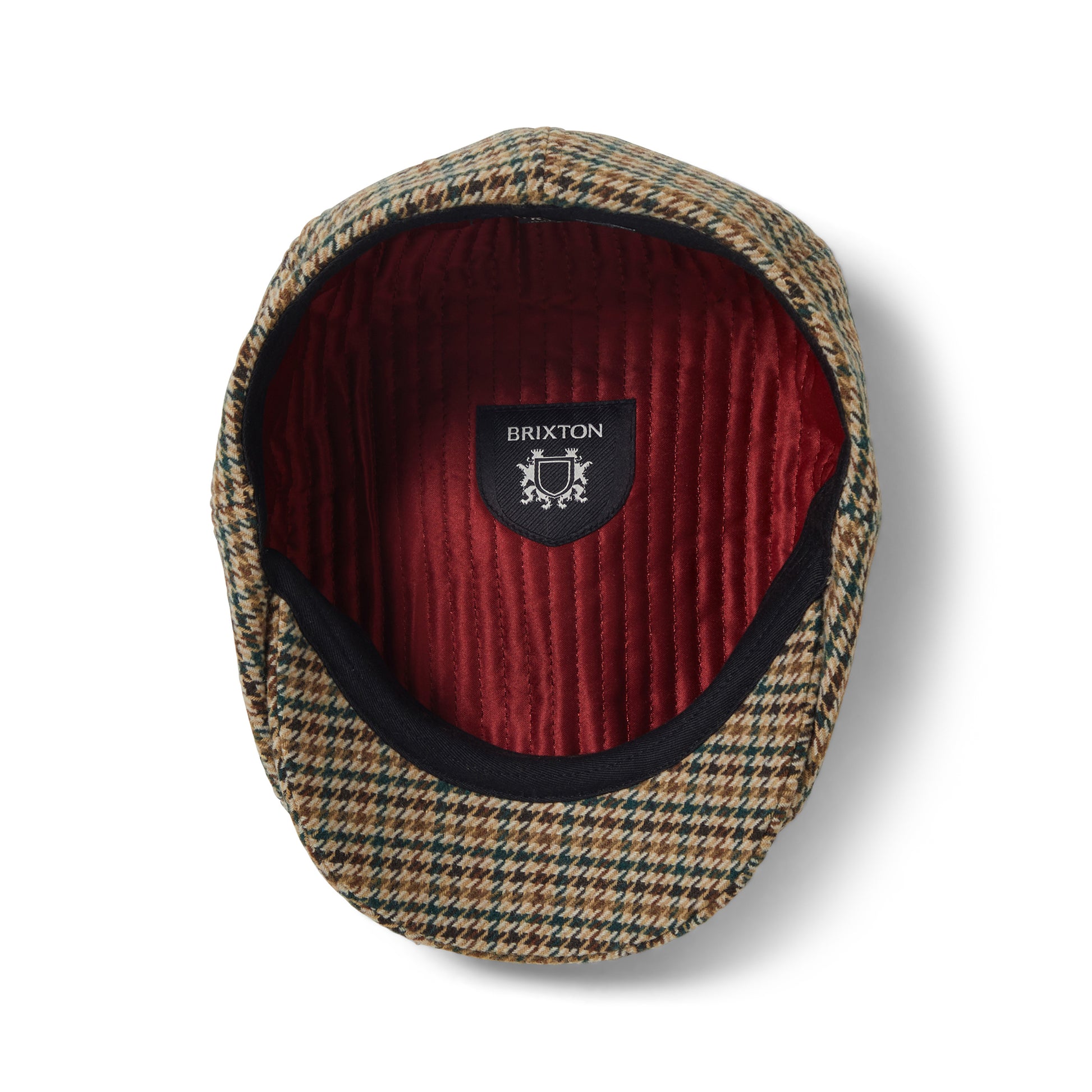 Die Brood ist ein fester Bestandteil der Brixton-Linie. Mit seinem leicht verlängerten Schnabel und dem Satinfutter ist dieser khakig-ockergrüne Zeitungsjunge mit Hahnentrittmuster ein absoluter Gewinner. Diese äußerst bequeme Kappe aus Wollmischung wird komplett mit Brixton-Pin an der Seitenwand geliefert.