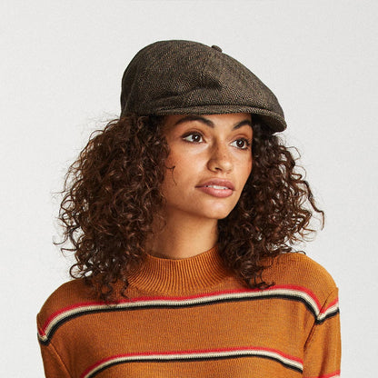 Brixton Brood Ballonmütze mit Fischgrätmuster - Braun-Khaki