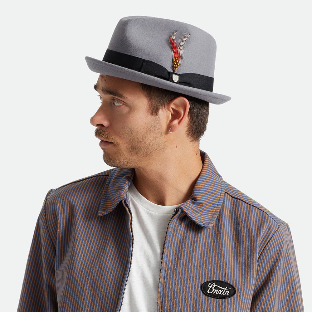 Brixton Gain Trilby Hut aus Wollfilz mit schwarzem Hutband - Grau