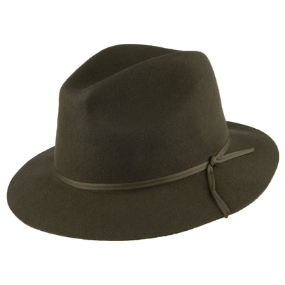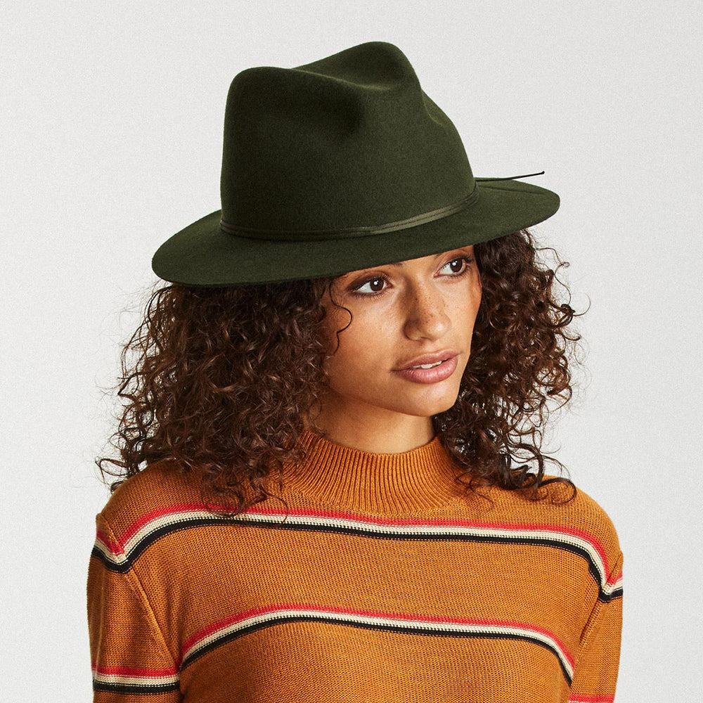 Der Brixton Graham Fedora in Moosgrün ist ein toller Hut aus 100% Wolle. Ein Hutband aus Ripsband umgibt die Krone. Ein Schweißband aus Kunstleder befindet sich auf der Innenseite für zusätzliches Tragekomfort.