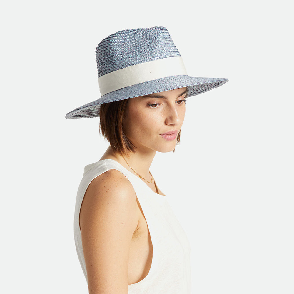 Brixton Joanna Kurze Krempe Sonnenhut aus Stroh - Eisblau