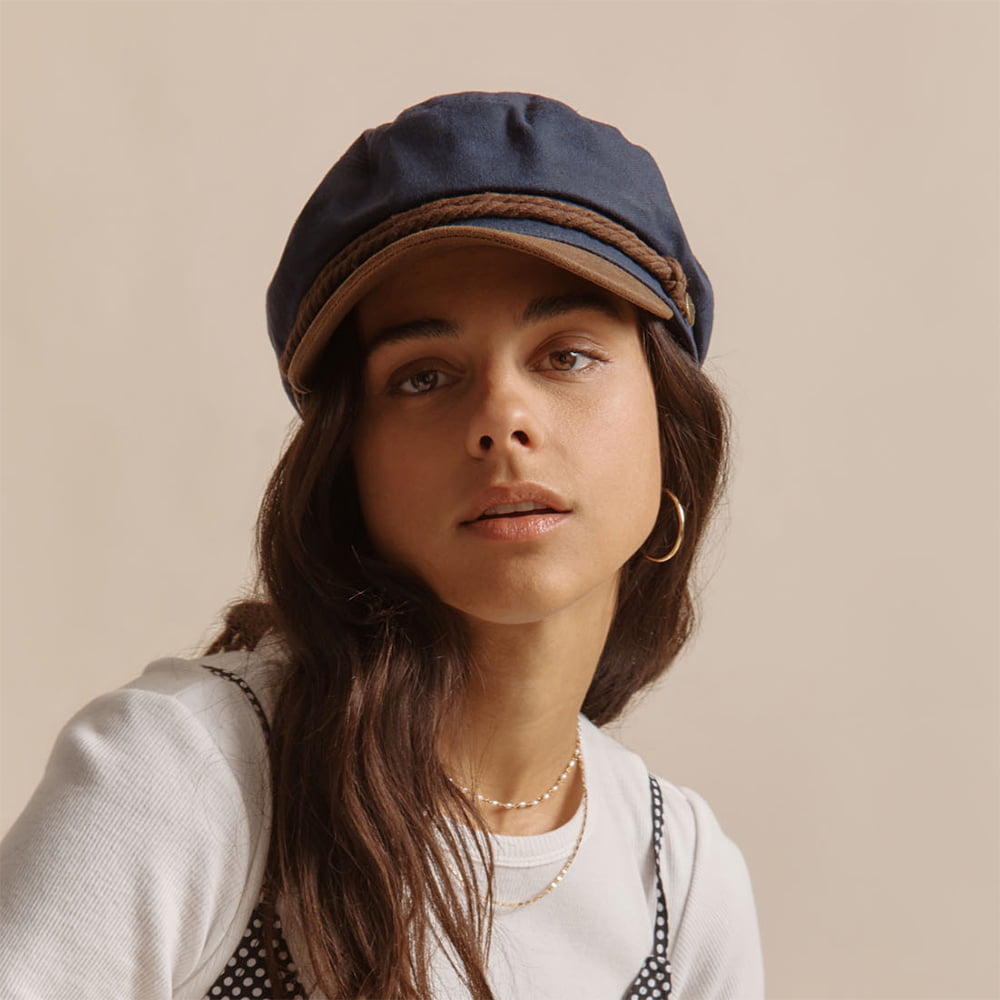 Brixton Schiffermütze aus gewachster Baumwolle - Marineblau-Braun