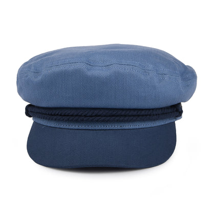 Die Fiddler Cap in schieferblau von Brixton Hats ist ein aus einer robusten, strapazierfähigen Baumwolle gefertigtes Cap. Mit einem kontrastierenden schwarzen Hutband wird die Kappe mit Ankerknöpfen schön akzentuiert. Sie ist mit einem Baumwollschweißband, einem Brixton-Baumwollfutter und einem Brixton-Schriftzug auf der Rückseite der Kappe versehen.