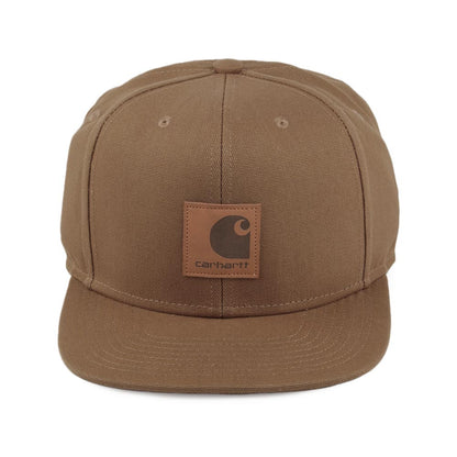 Dies ist die WIP Logo Snapback Cap von Carhartt in braun. Ein Carhartt-Logo aus Kunstleder ist auf die Vorderseite der Krone genäht. Das Visier ist flach und an der Rückseite befindet sich ein verstellbarer Riemen. Die Cap hat eine strukturierte Krone und Belüftunglöcher, um optimale Belüftung zu garantieren.