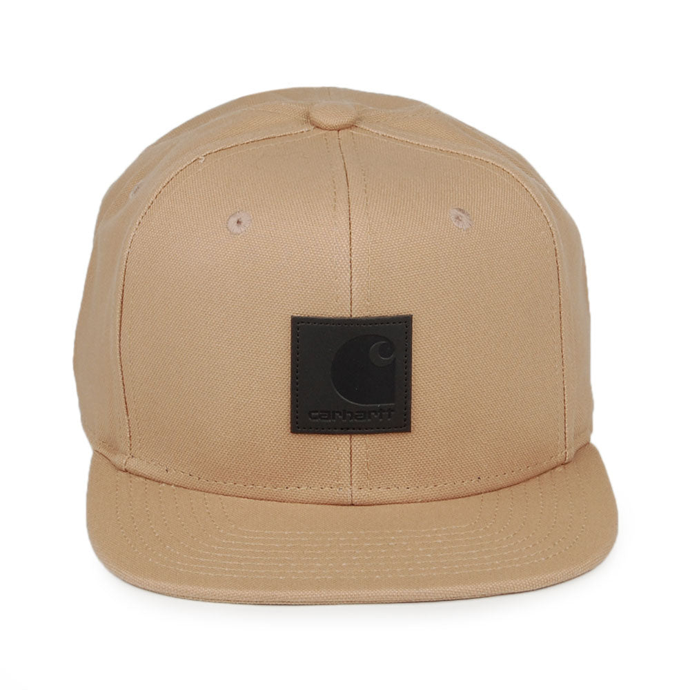 Dies ist die WIP Logo Snapback Cap von Carhartt in sand. Ein Carhartt-Logo aus Kunstleder ist auf die Vorderseite der Krone genäht. Das Visier ist flach und an der Rückseite befindet sich ein verstellbarer Riemen. Die Cap hat eine strukturierte Krone und Belüftunglöcher, um optimale Belüftung zu garantieren.