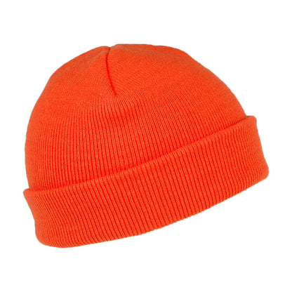 Die Stratus Short Watch Beanie in orange von Carhartt WIP ist eine hochwertige Mütze mit einem aufgerollten Umschlag. Das legendäre Carhartt WIP Logo ist auf der Vorderseite des Umschlags aufgestickt.