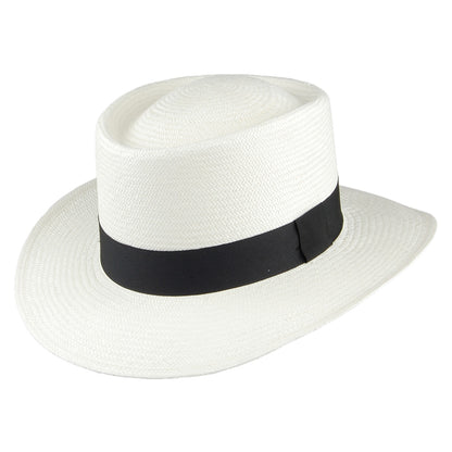 Dies ist der Christys Camilla Panama Gambler Strohhut in natur. Dieser Hut ist aus 100% Toquilla-Stroh gemacht und wurde in Ecuador gewebt. Er wurde dann nach Großbritannien versandt und in der Christys Fabrik fertiggestellt. Um die Krone befindet sich ein schwarzes Hutband aus Ripsband. Die Innenseite ist ungefüttert und beinhaltet ein Schweißband für optimalen Komfort,