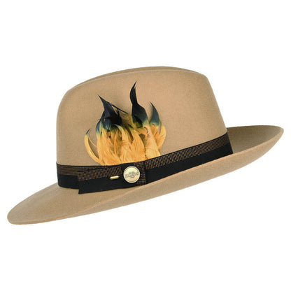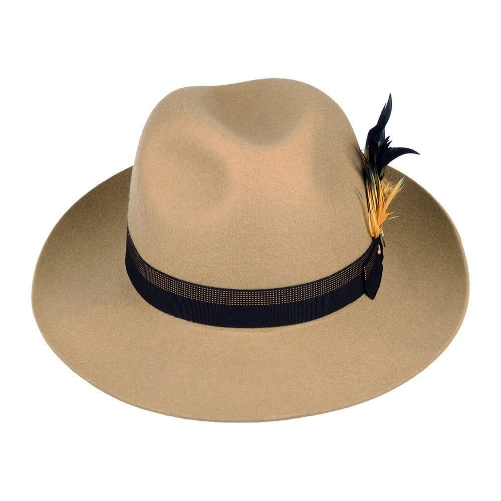 Christys Grosvenor Fedora Hut aus Wollfilz Mit Federn - Kamel