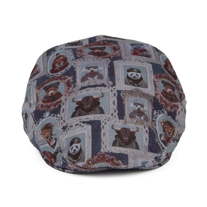 Dies ist die City Sport Animal Portrait Schiebermütze in blau-grau. Die Mütze ist mit einem einzigartigen Design ausgestattet, das eine Vielzahl von Tierporträts zeigt. Die Kappe ist aus 100% Baumwolle und hat ein Satin-Futter für die komfortabelste Passform. Es ist eine City-Sport-Nadel an der Seite des Hutes befestigt.