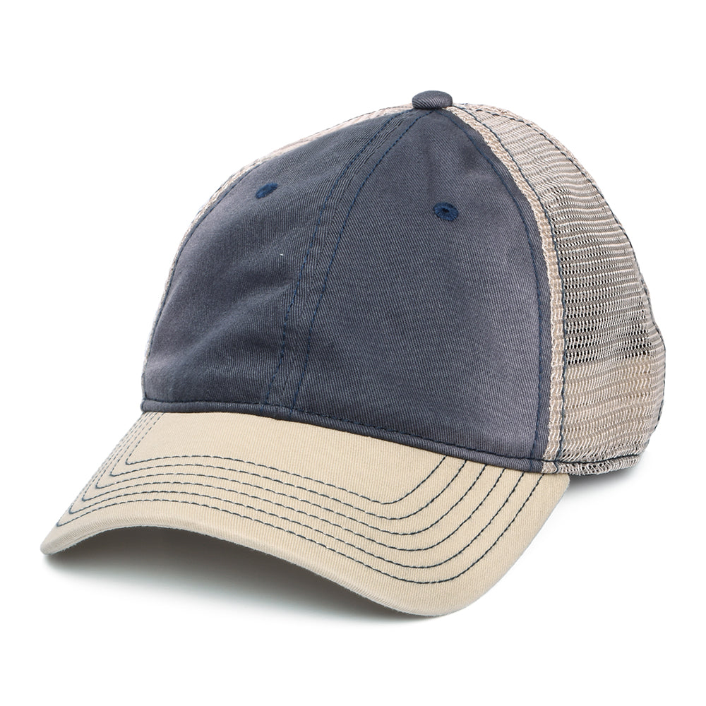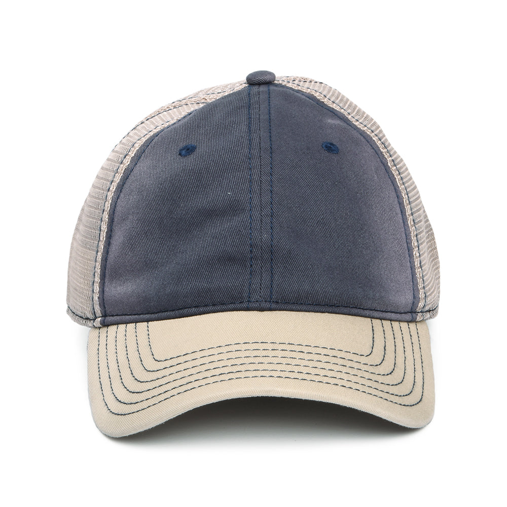 Dies ist die Trucker Cap aus Baumwolle von Dorfman-Pacific in Marineblau. Die Vorderseite hat einen verwaschenen Look und die Rückseite ist aus einem weichen Netzstoff für maximale Atmungsaktivität. Auf der Rückseite ist ein größenverstellbarer Riemen für optimalen Tragekomfort.