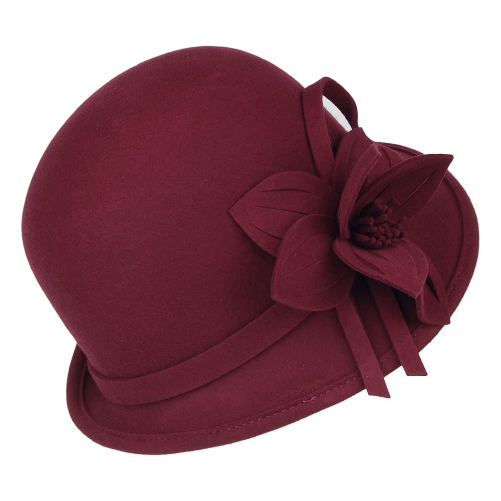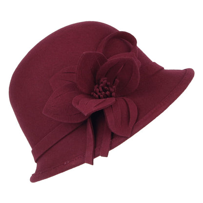 Failsworth Blumen Glockenhut aus Wollfilz - Burgunderrot