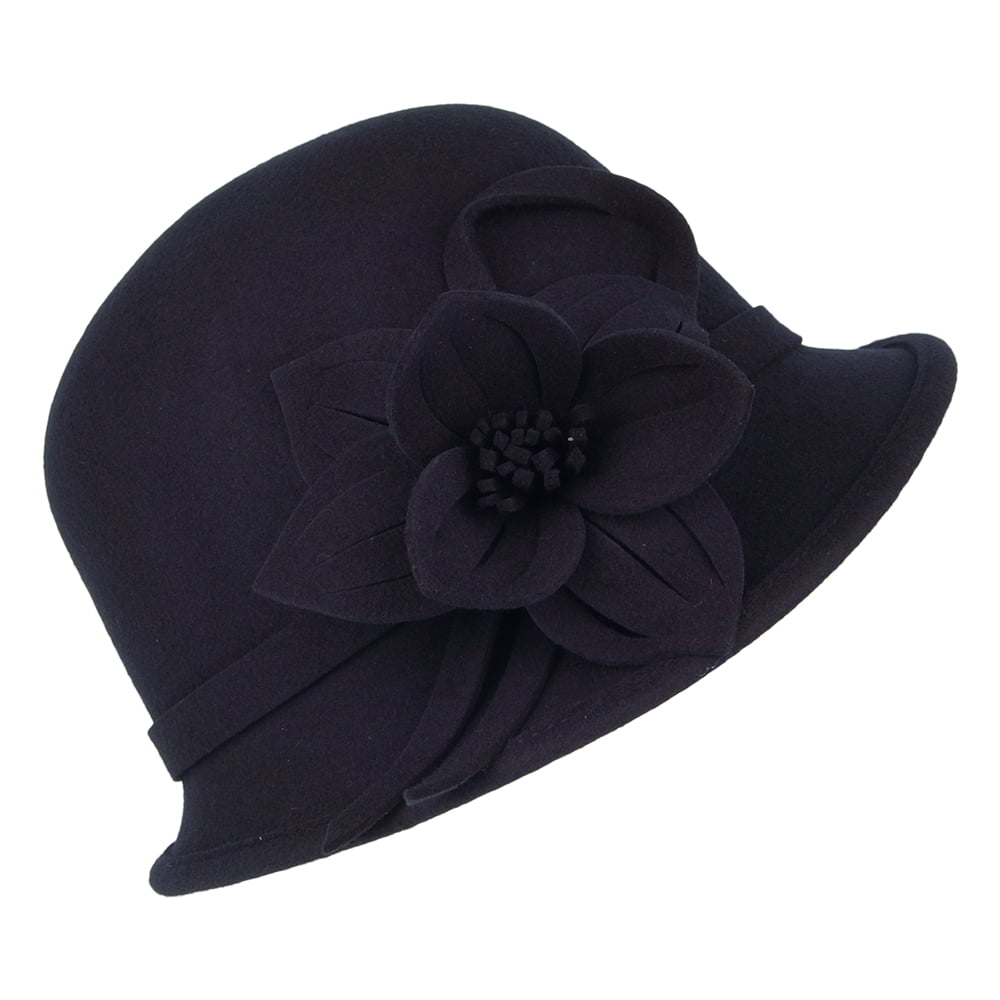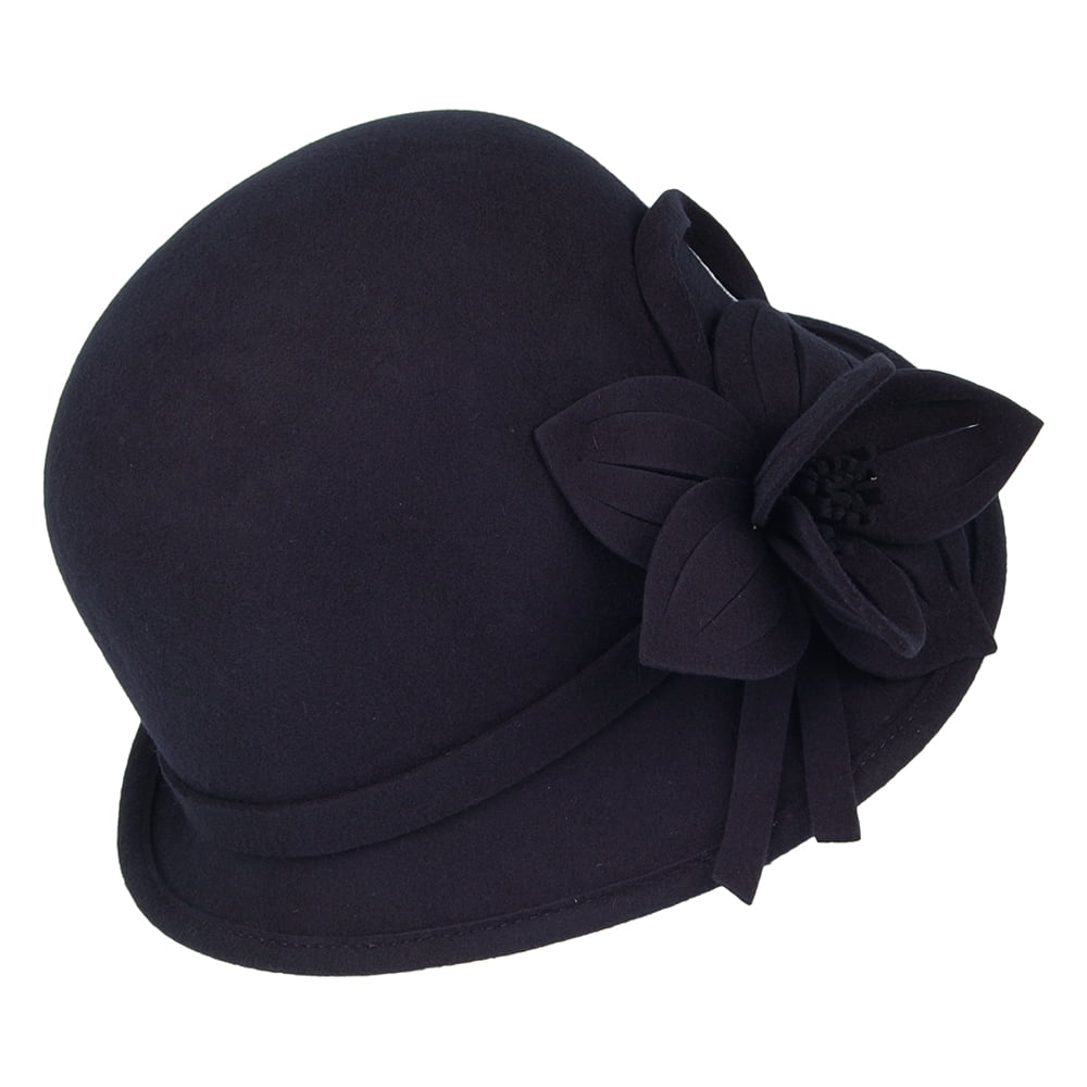 Failsworth Blumen Glockenhut aus Wollfilz - Marineblau