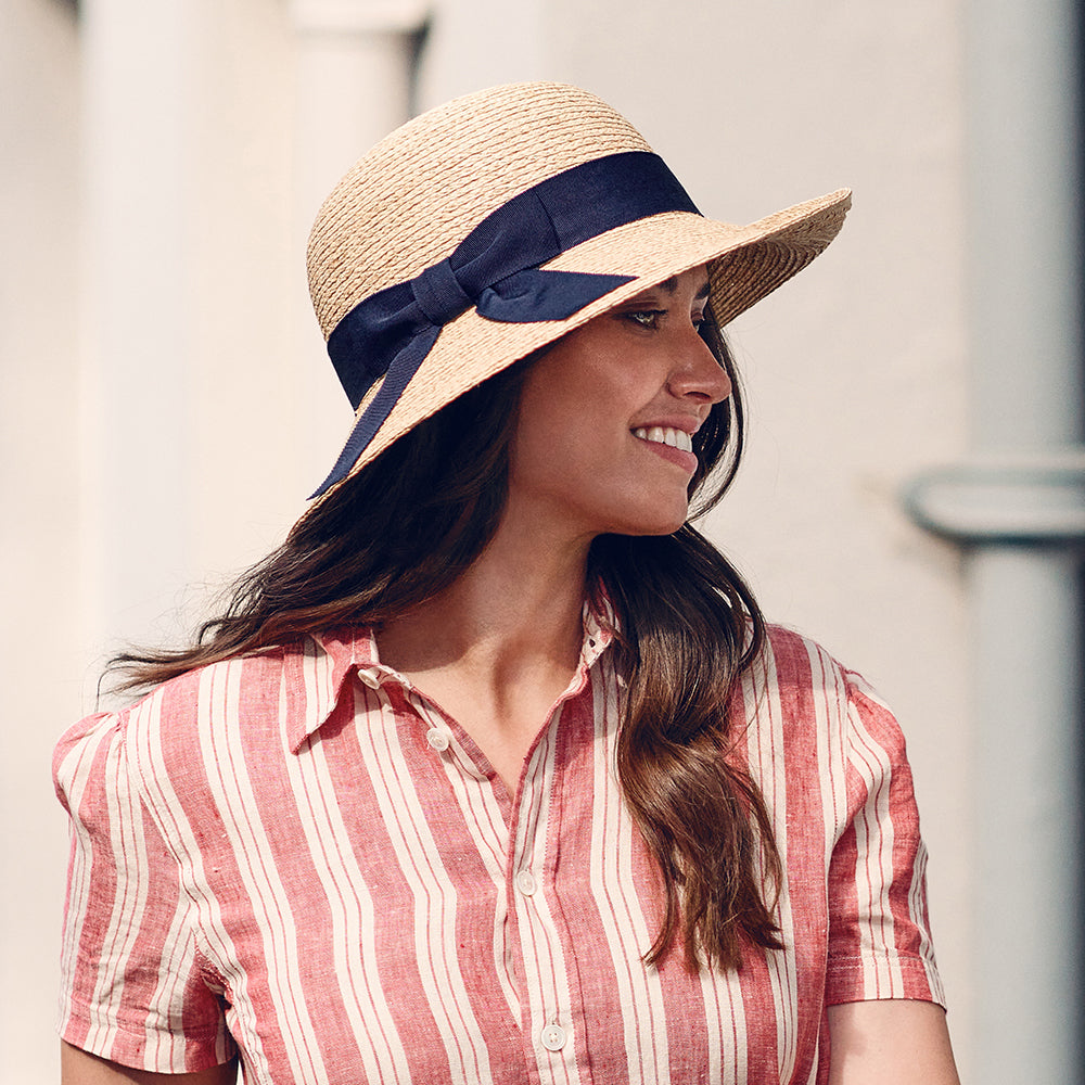 Failsworth Bronte Sonnenhut aus Stroh - Natur-Marineblau