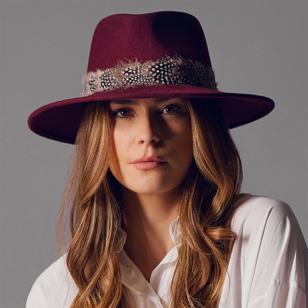 Hier ist der Failsworth Country Feder Fedora Hut in merlot. Hergestellt aus 100% Wolle, wurde der Hut auf der Außenseite beschichtet, um wasserabweisend und fleckenabweisend zu sein. Ungefüttert hat der Hut ein verstellbares Schweißband für Komfort und eine perfekte Passform. Dieser Hut ist mit einem fantastischen Hutband aus Federn geschmückt. Die Krempe ist ca. 6,5cm breit und die Krone misst ca. 11cm hoch. Ein schöner Hut für die Saison.