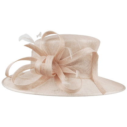 Der festliche Hut Juliet von Failsworth ist aus 100% hochwertigem Stroh. Dieses klassische Design ist mit einer großen Schleife und Federn auf der Krone vollendet. Mit diesem eleganten Hut werden Sie aus der Menge herausstechen.
