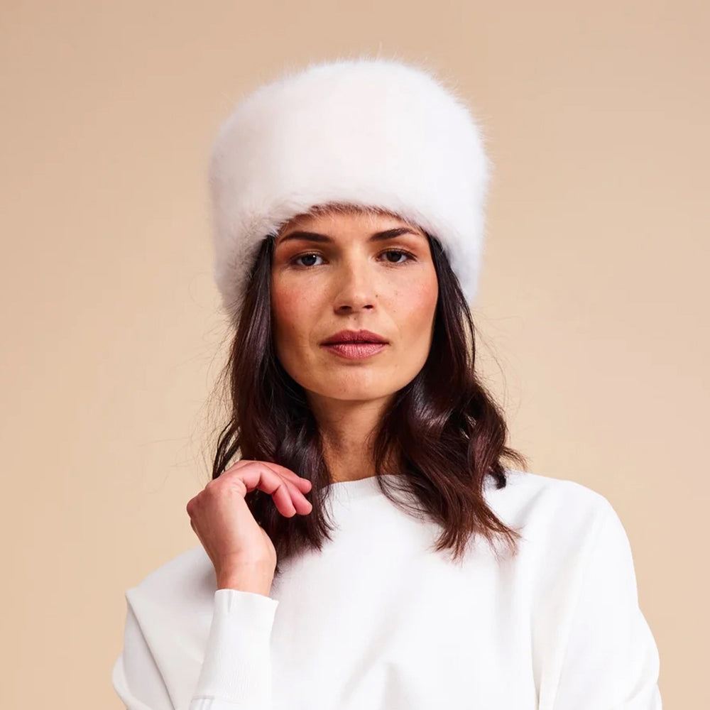 Helen Moore Winter Pillbox Hut aus Kunstfell - Elfenbein