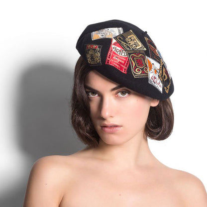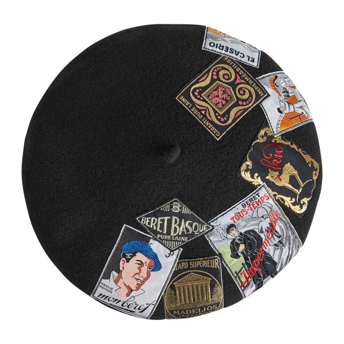 Héritage Eridan Vintage Patch Baskenmütze aus Merinowolle - Schwarz
