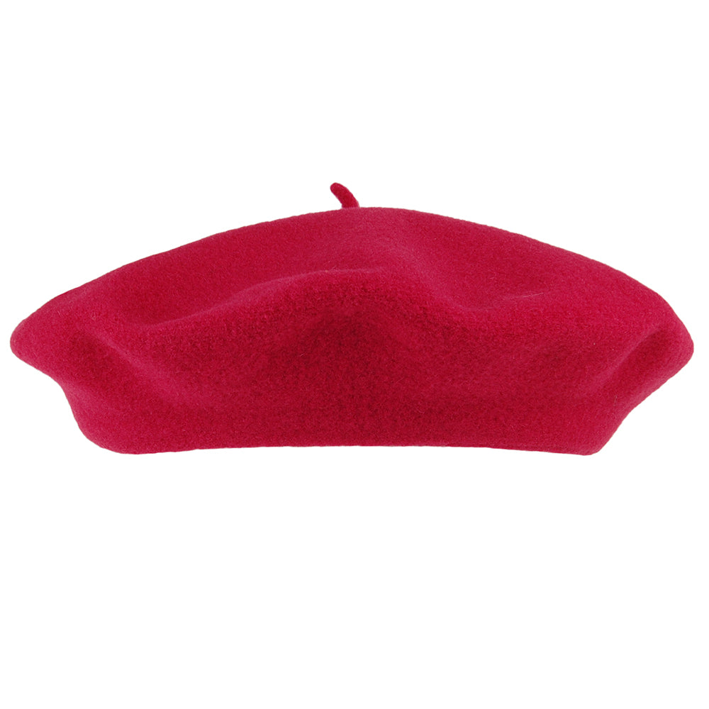 Laulhère authentische Baskenmütze aus Merinowolle - Himbeere