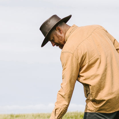 Der Knautschbare Outback Cowboyhut ist ein großartiger Lederhut von äußerst hoher Qualität aus dem Hause Jaxon & James. Der Hut ist aus hochwertigem, strapazierfähigem Büffelleder gefertigt, was Sie sofort spüren, sobald Sie ihn in den Händen halten.