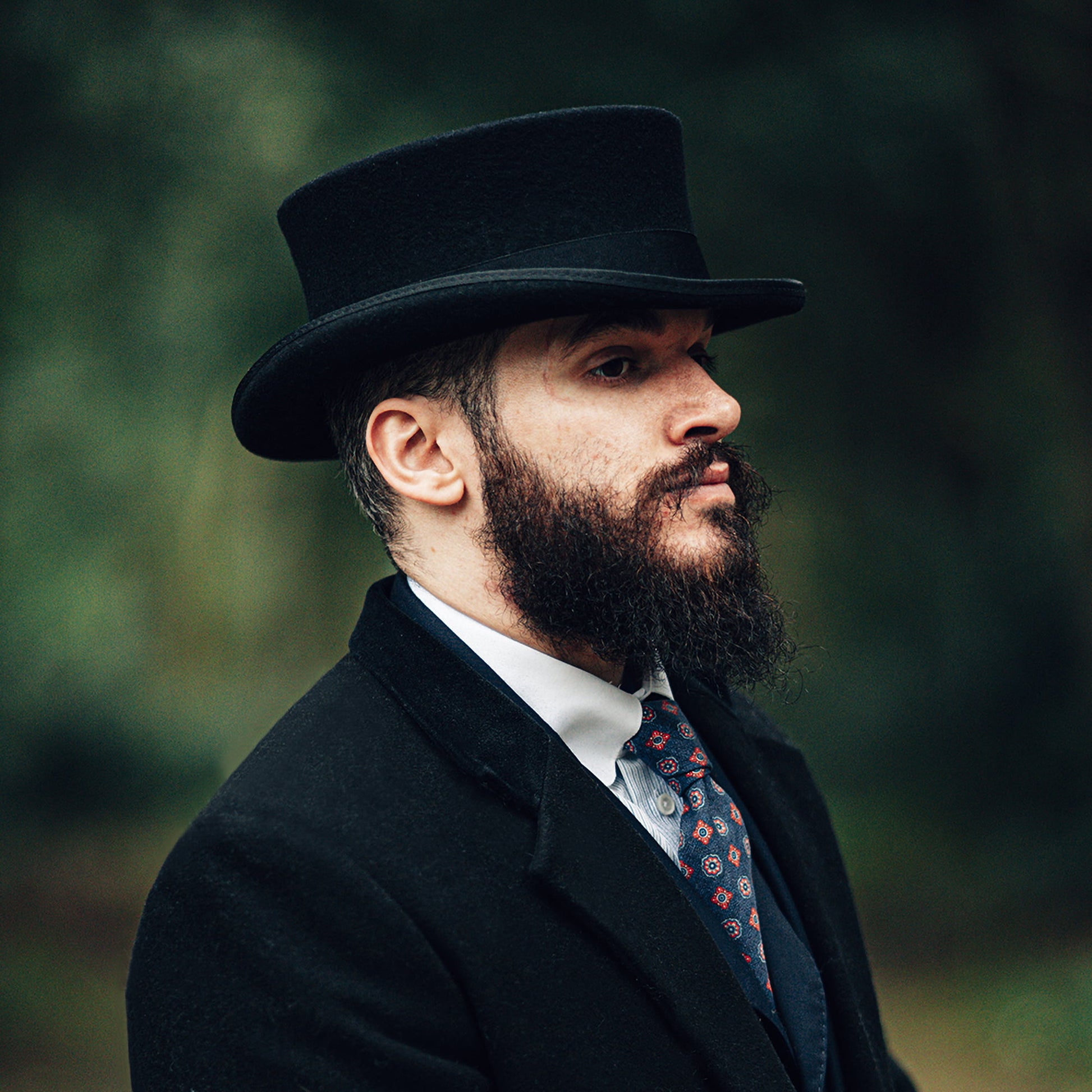 Der "Deadman" Zylinder ist eine Interpretation des zeitlosen Klassikers, den Sie vielleicht auch in dem Film "Dead Man" gesehen haben. Dieser Zylinder sticht auf Grund seiner ausgestellten 10 cm hohen Krone heraus. Die gebogene, mit Ripsband eingefasste Krempe ist 5,5 cm breit. Das Hutband ist aus Ripsband und ca. 3,5 cm breit und mit der traditionellen Schleife an der Seite. An der Schleife befindet sich auch eine abnehmbare Feder. Das Schweißband aus Vinyl trägt zu hohem Tragekomfort bei.