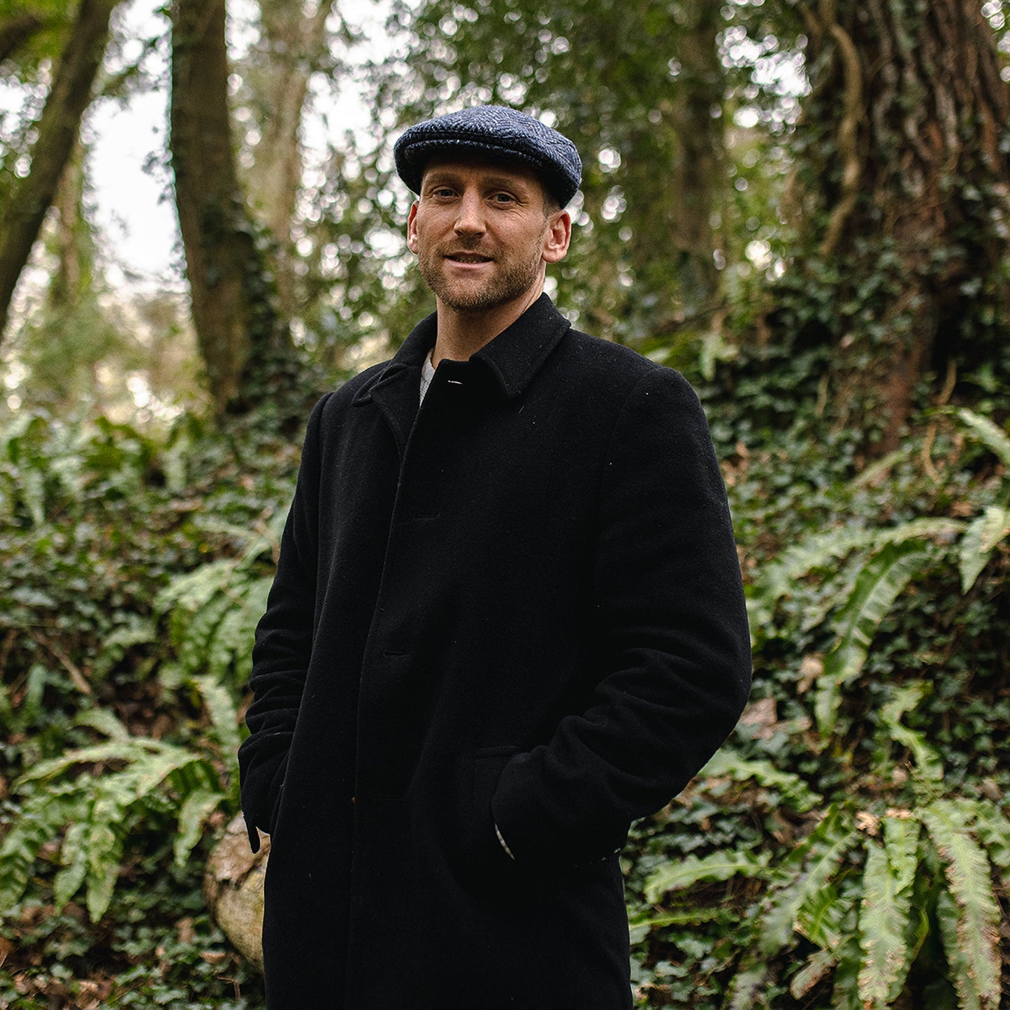 Jaxon & James Dunmore Donegal Tweed Schiebermütze mit Fischgrätmuster - Marineblau-Schwarz