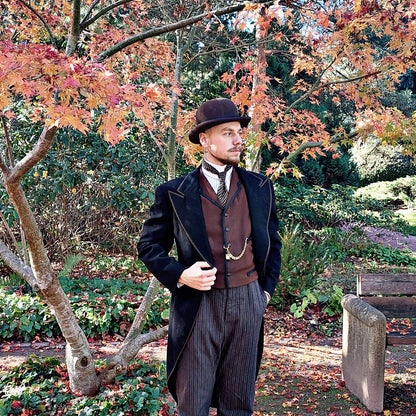 Wir sind der Überzeugung, dass es keine bessere Melone aus Wollfilz in braun gibt. Die Idee zu diesem steifen Hut für Reiter kam einem englischen Wärter im Jahre 1850, als er ein Wildgehege patrouillierte. Dieser Tradition folgend ist die Jaxon & James Version der Melone ein bisschen steifer als die von anderen Herstellern. Und nach guter englischer Tradition ist er ein bisschen niedriger als die späteren amerikanischen Versionen. Die Melone ist aus 100% Wollfilz herausragender Qualität und ist voll gefüttert mit Satinfutter und dem Jaxon & James-Logo im Futterdach. Der Hut ist mit einem braunen Ripsband als Hutband verziert und an der Schleife ist eine Feder angebracht.