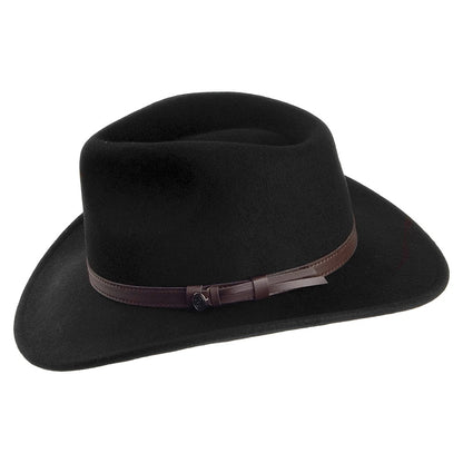 Dies ist der Jaxon & James Outback Cowboyhut. Die 7 cm breite Krempe und das Hutband aus Kunstleder sind charakteristische Merkmale für diesen Outback Hut. Knautschbar, leicht einpackbar und wasserabweisend ist er der perfekte Begleiter für jede Reise. Die Krempe bietet guten Schutz gegen jedes Wetter. Die Krone hat eine Höhe von 11,5 cm. Ein bequemes Schweißband vollendet diesen vielseitigen Hut aus 100% Wollfilz.