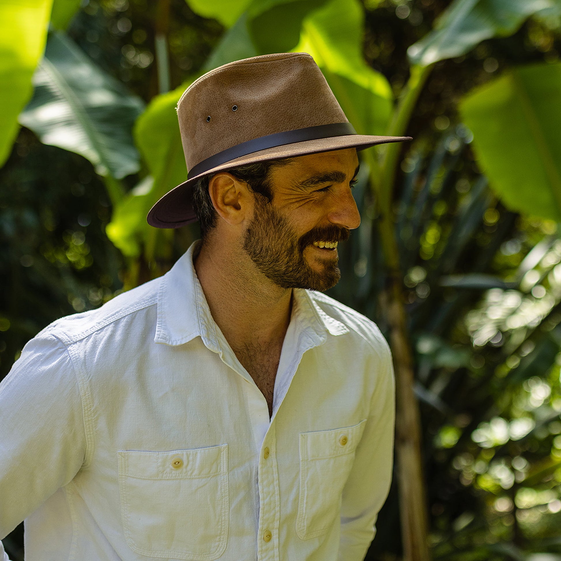 Jaxon & James Safari Fedora Hut aus Nubukleder - Kastanienbraun