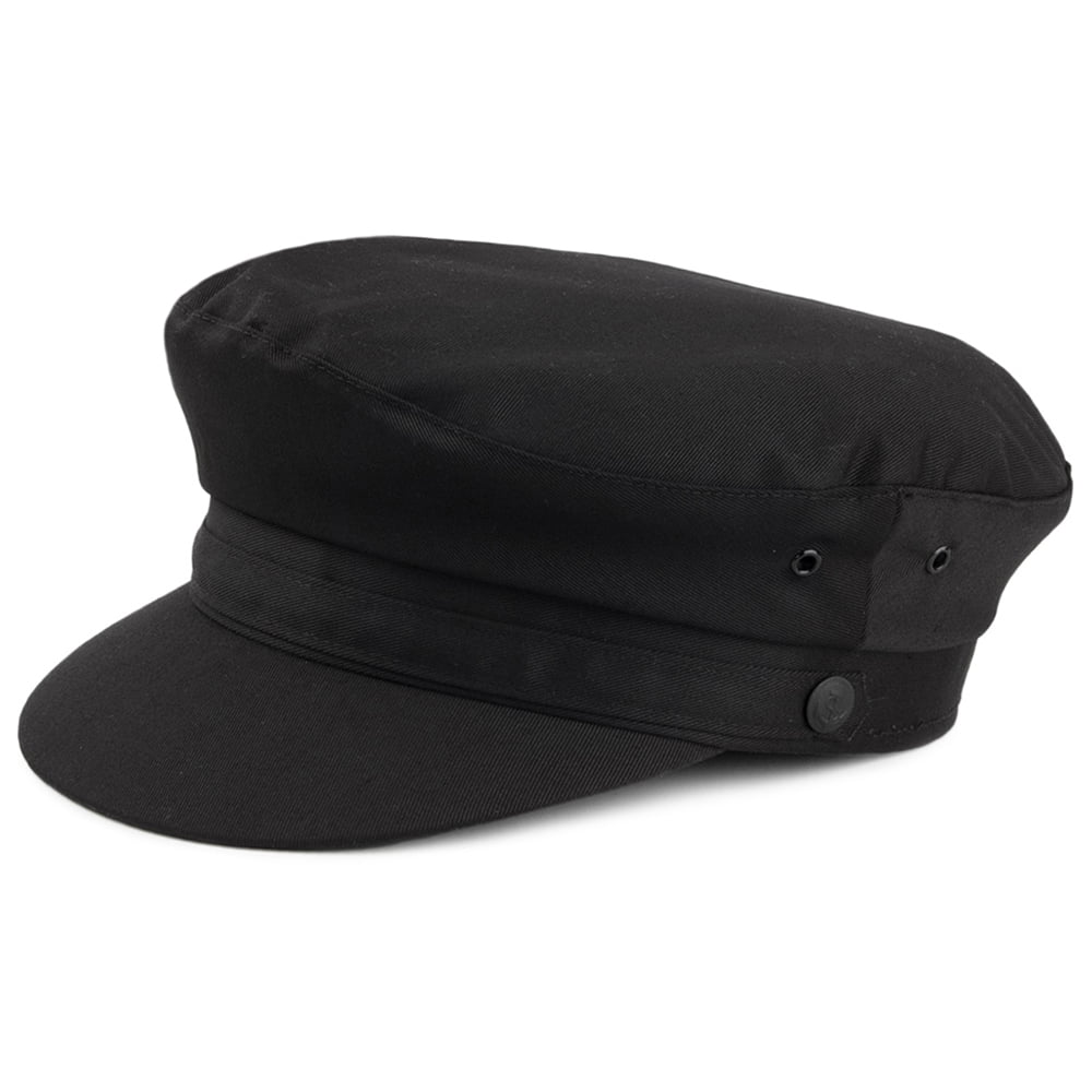 Hier ist die Jaxon & James griechische Fischermannsmütze aus Baumwolle in schwarz. Der Stil, auch bekannt als Schiffermütze oder bretonische Mütze, war Jahr für Jahr einer der beliebtesten Stile. Die schwarze Mütze ist aus 100% Baumwolle gefertigt und ist versehen mit einem passenden Hutband mit seitlichen Knöpfen und ist komplett aus Satin gefüttert. Eine praktische Mütze, die ideal für die warmen Monate des Jahres ist.
