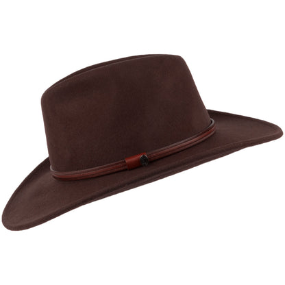 Der Jaxon & James Sedona Cowboy-Hut in braun spiegelt den spezifischen und einzigartigen Gus-Style wieder. Die Krone hat eine Höhe von 10 cm und die Krempe ist 8 cm breit. Das Hutband aus Leder vollendet den Cowboy-Look.