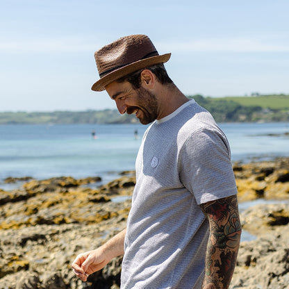 Der Tribeca Trilby Strohhut ist ein neuer, stylischer Hut aus dem Hause Jaxon & James. Hergestellt aus 100% Toyo-Stroh, misst das atmungsaktive Leichtgewicht eine Kopfhöhe von 11.5cm mit einer 4.5cm breiten Krempe. Aufgrund der Beschaffenheit und Webart des Toyo-Strohs ist der Hut nicht ganz glatt, ein zusätzliches Merkmal, dass den lässigen Look unterstreicht. Der Hut hat ein 4cm breites geripptes Hutband. Das Ganze wird abgerundet mit einem Schweißband aus Baumwolle, abnehmbarer Feder sowie einer abnehmbaren Jaxon & James Stecknadel.