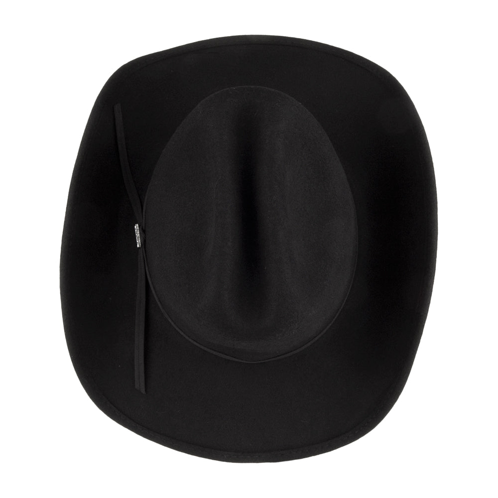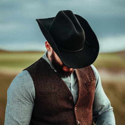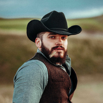 Dieser Jaxon & James Cowboy-Hut in schwarz ist ein Klassiker! Die 9cm breite Krempe hat einen versteckten Draht an seinem äußeren Rand, um den Hut nach Wunsch zu formen. Der Hut aus 100% Wollfilz ist imprägniert und somit wasserabweisend. Die Krone hat eine Höhe von 10 cm und ist mit einem Hutband verziert.