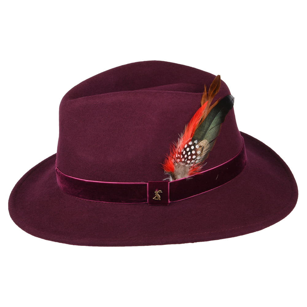 Joules Fedora Hut aus Wollfilz mit Samt-Hutband - Granatrot